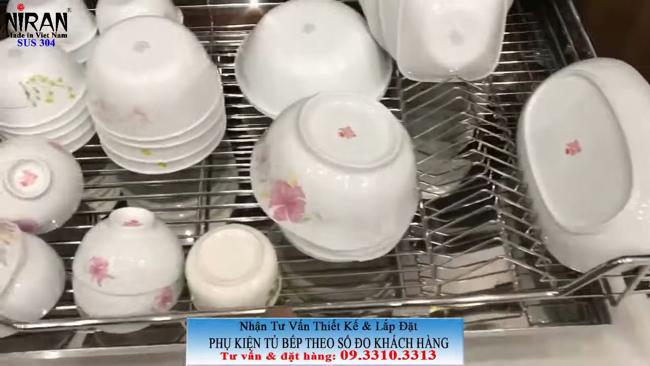✅Rỗ chén dĩa xoong nồi Niran Inox 304 có ray kéo giảm chấn