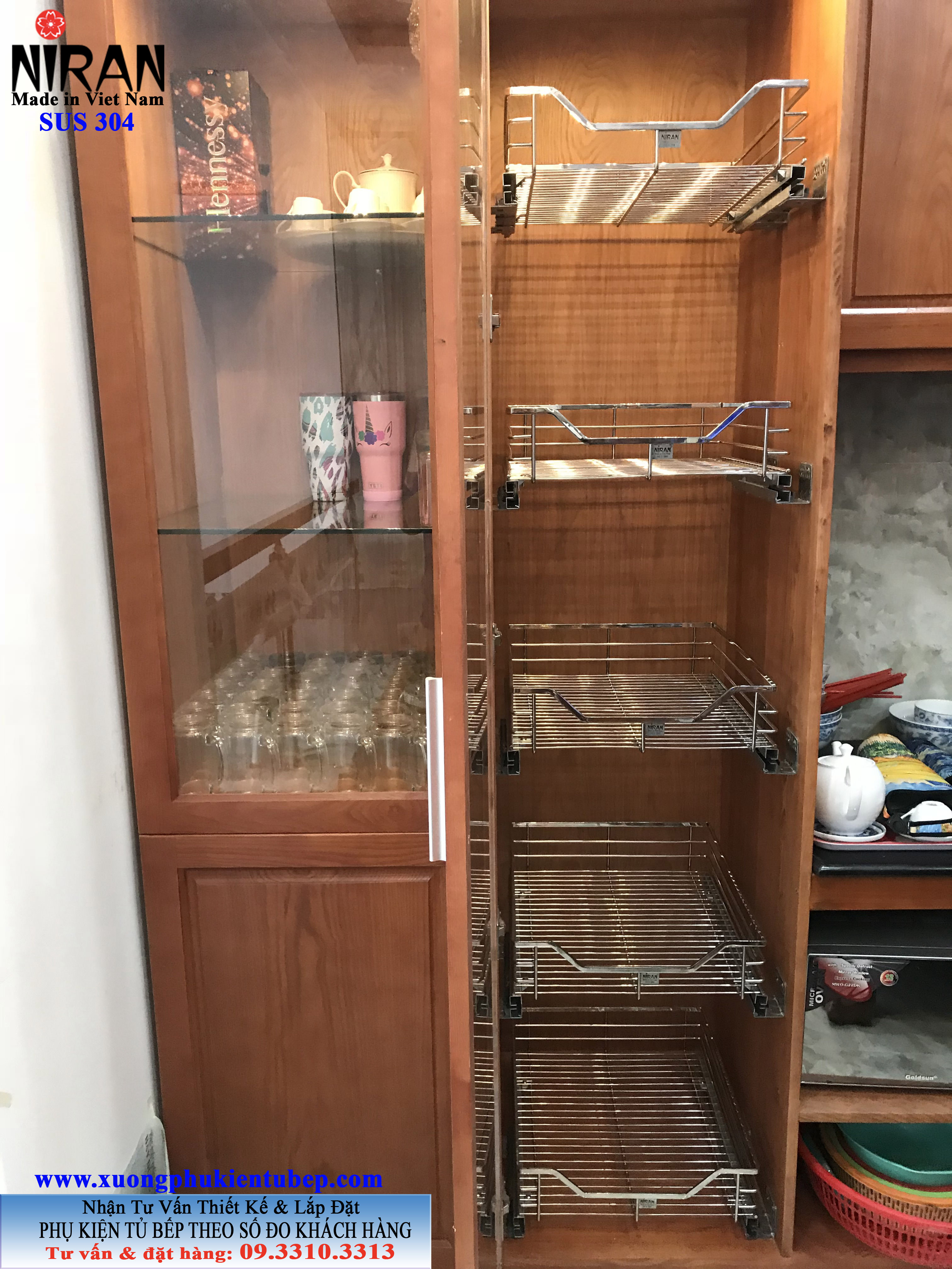 - Hình ảnh thiết kế lắp đặt phụ kiện tủ bếp inox 304 Niran