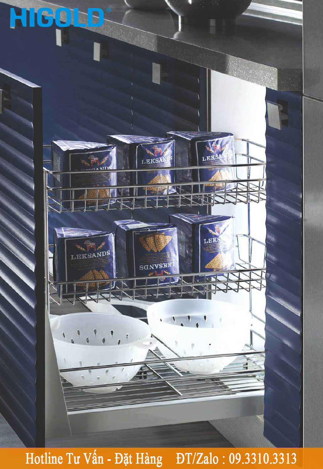 Kệ 3 tầng đựng chai lọ ray giảm chấn Higold 305001 chính hãng được phân phối trên toàn quốc tại www.xuongphukientubep.com