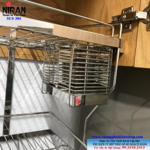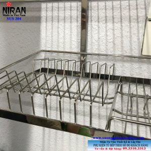 Rổ đựng chén dĩa inox 304 Niran được sử dụng ray giảm chấn Hand Germany. Thiết kế tầng trên có ngăn để dĩa hoặc các loại nắp nồi tiện nghi khi sử dụng.